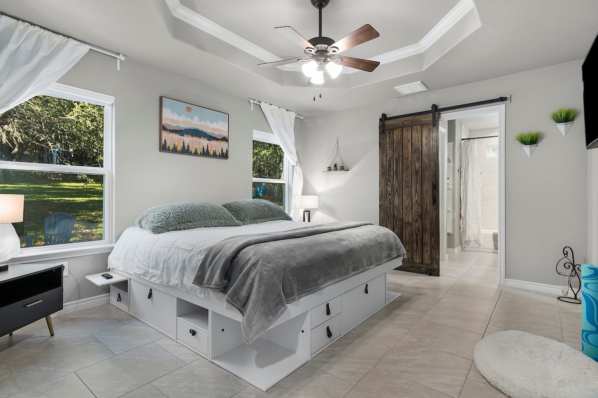 ✔ Washer, dryer, detergent, iron/board, full size mirror in master closet