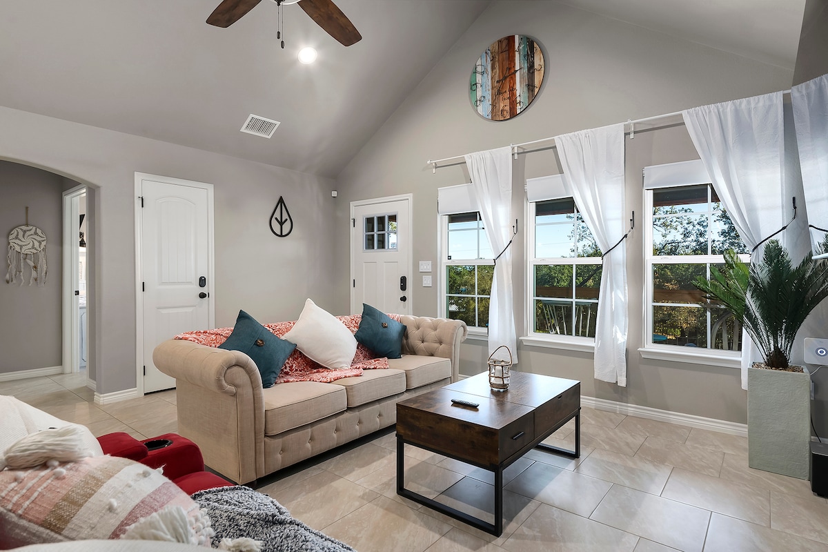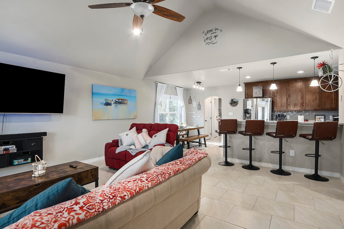 The spaceCompleted at the EOY in 2020, a vaulted living room welcomes you with ample comfortable seating when you enter the cottage. Retreat to three comfortable bedrooms, which feature high comfort bedding that allow you to rest after an exciting day of lake town adventures. Some house items you'll find include: