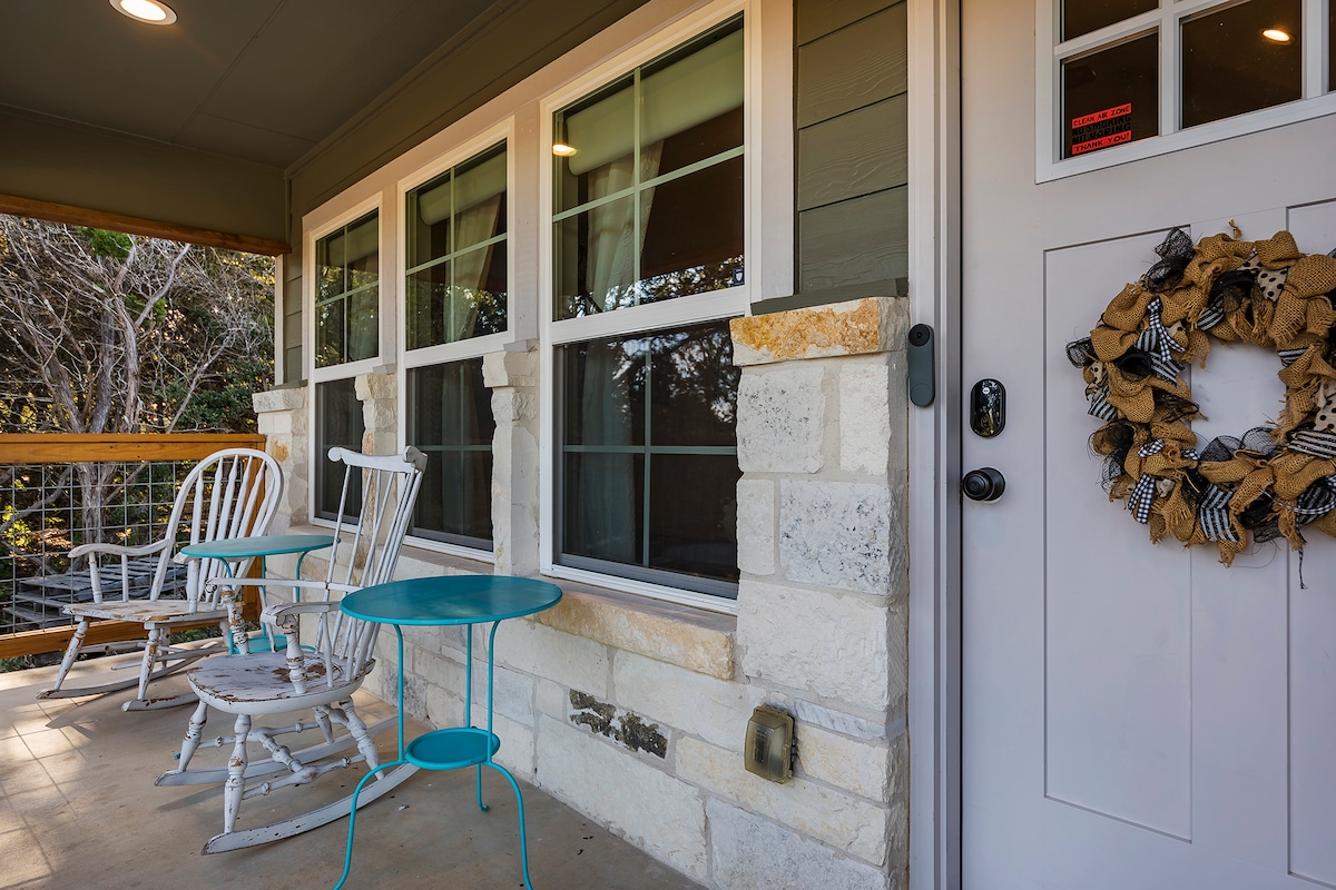 Getting aroundMostly everything requires a small drive and there are little to no delivery services. Lite grocery store (Lowe's) is 5 mins away while the fully stocked grocery (HEB) is about 20 mins away. San Marcos and New Braunfels sit 30 mins away, San Antonio at 30 mins and Austin at 45 mins away. Being that the property is in a rural area, 4 cameras survey the exterior.