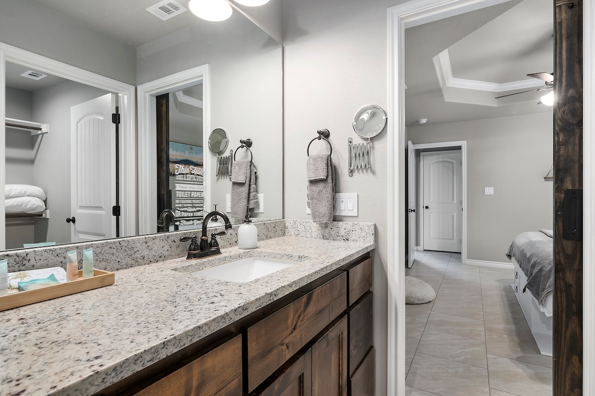 ✔ Flip mirror (1 side w/ magnification) installed in both bathrooms